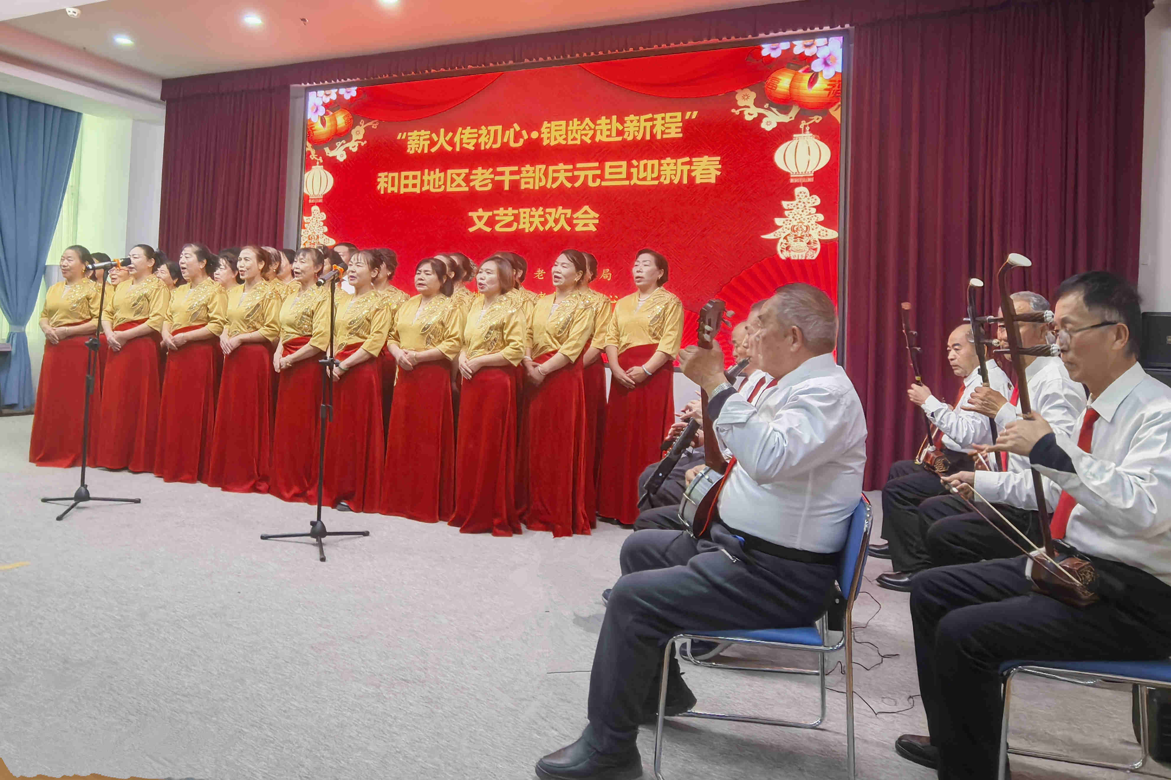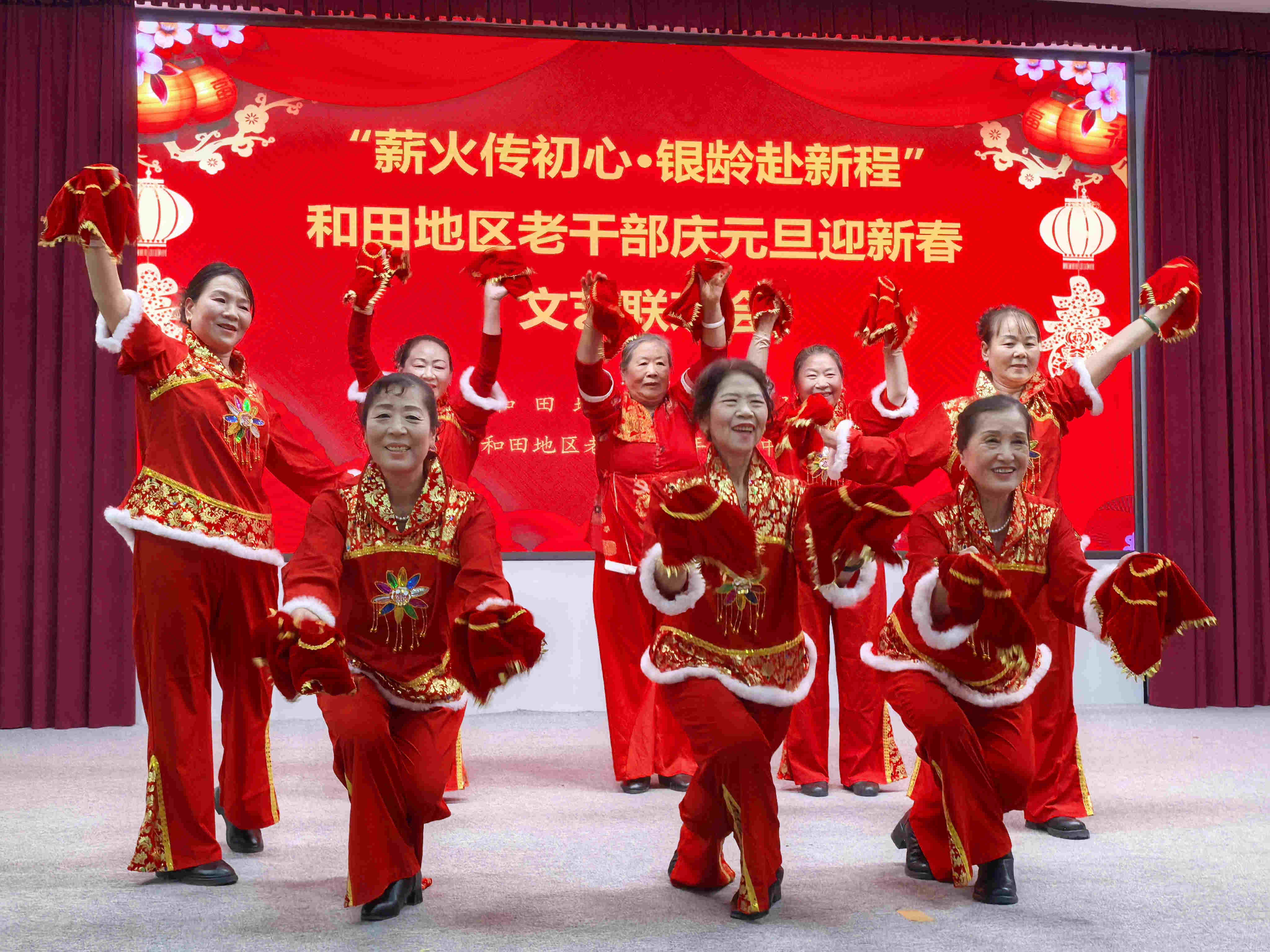 岁序更迭,华章日新,2026年悄然临近。12月29日下午的新疆和田,窗外寒气清冽袭人,室内弦歌袅袅盈堂,一场主题为“薪火传初心 银龄赴新程”的老干部庆元旦迎新春文艺联欢会在新疆和田地区老干部老年活动中心热闹温馨上演。二百余名老干部以歌抒怀、以舞寄情,欢天喜地辞旧迎新、共贺佳节,为广大老干部、老年朋友送上了一场精彩纷呈的文化盛宴。