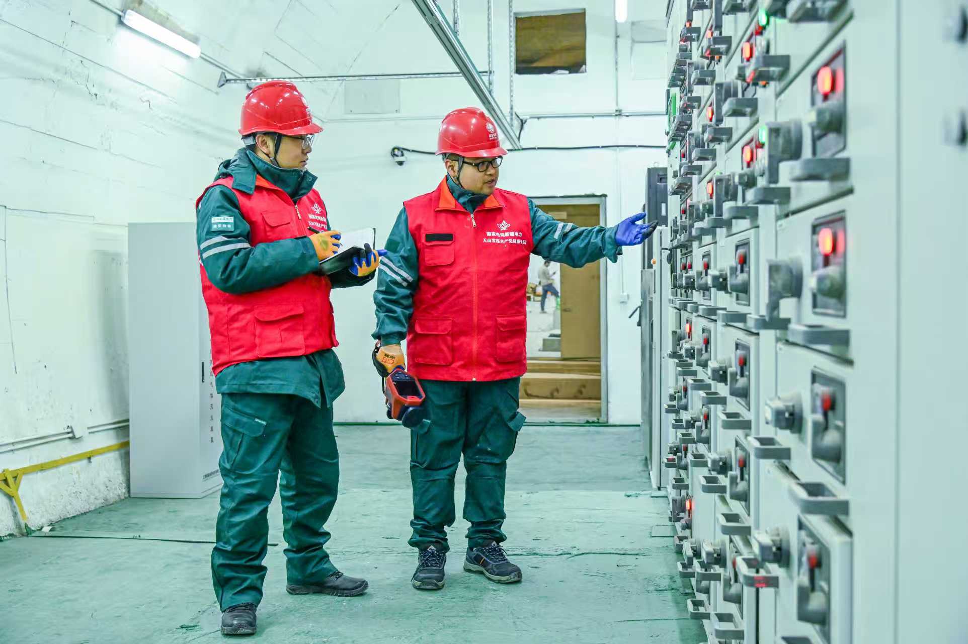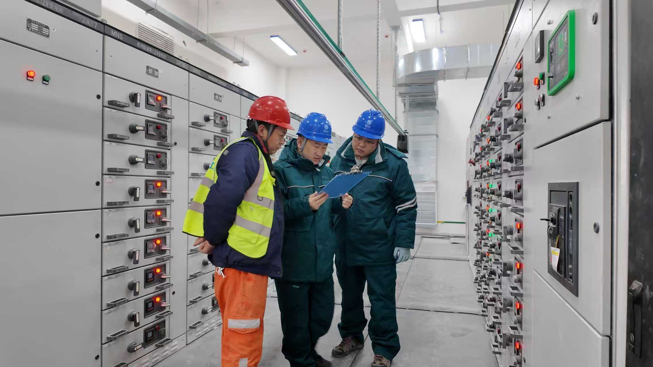 国网乌鲁木齐供电公司工作人员对天山胜利隧道配电室进行检查。(谢佳圻 摄)