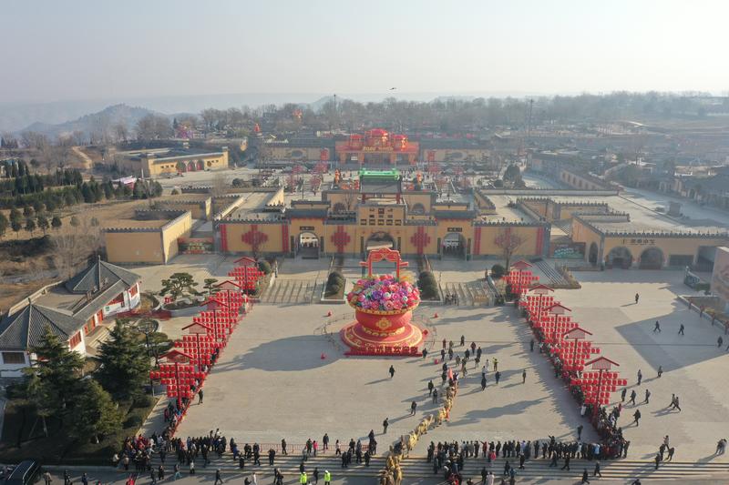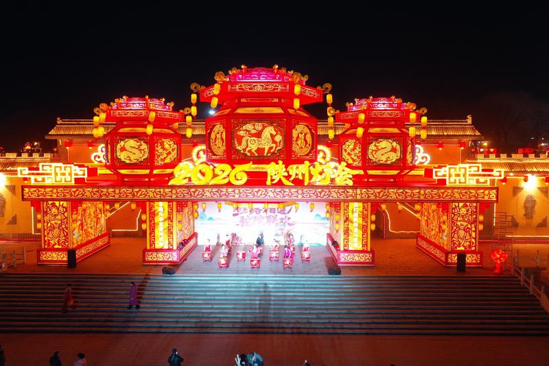 陕州地坑院景区内2026年灯会主舞台效果展示(杨欣 摄)