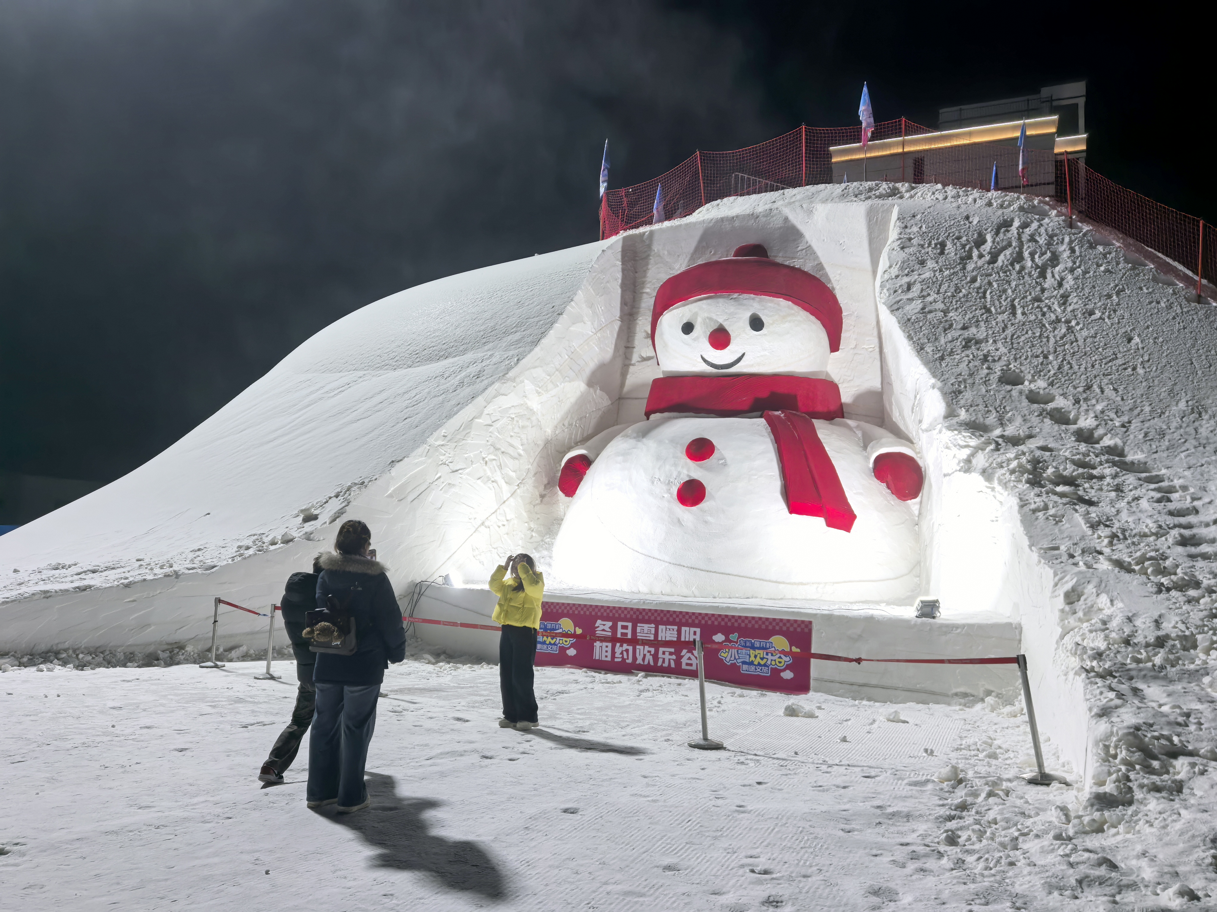 这座占地约4万平方米的“冰雪欢乐谷”,精准把握全年龄段游客的多元化需求,精心设计了20余项冰雪娱乐活动。从充满速度与激情的极速冰滑梯、雪山冲浪,到适合全家齐上阵的梦幻冰场、欢乐雪圈;从承载着70后、80后集体记忆的滑冰车、抽冰尜等传统冰嬉项目,到让孩子们尽情释放天性的雪地撒欢区,真正实现了“一站式”满足所有游客对冬日玩雪的全部想象。园区内还打造了冰雕、雪雕等多处艺术景观,“巨型雪人”憨态可掬,传统花灯技艺与现代冰雪工艺巧妙融合,古树、蝴蝶等元素构成的魔法奇幻灯组,在夜幕降临时华彩绽放,营造出“灯雪交融”的梦幻景象,成为游客争相打卡拍照的“出片”胜地。