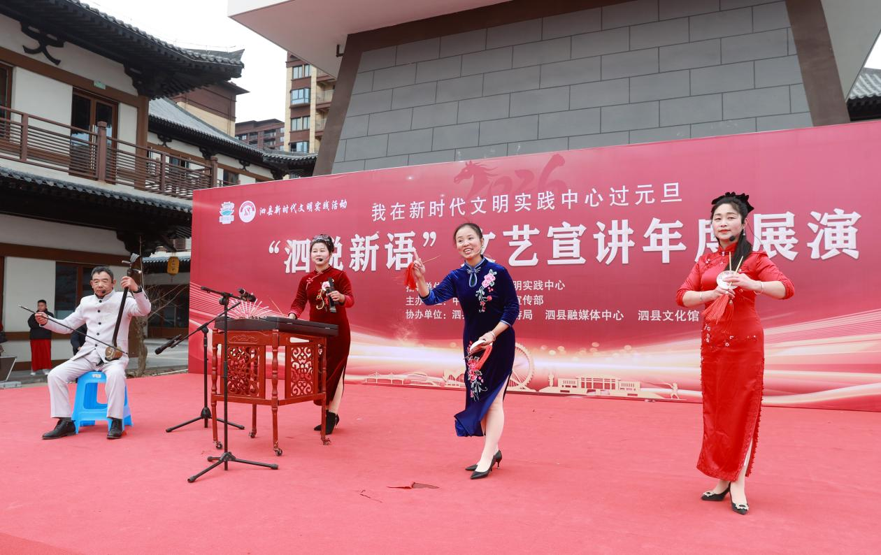 近年来,泗县依托“中国民间文化艺术之乡”的深厚底蕴,持续创作《虹桥情》《六尺巷》等精品文艺宣讲作品。其中,泗州戏《米芾沉砚》更是荣获第十五届全国小戏小品曲艺大展最佳剧目奖。