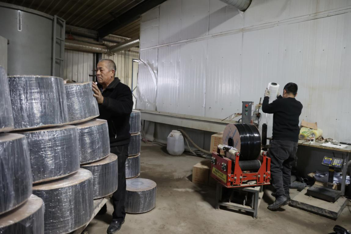 此厂自2023年起便与农户签订旧滴灌带回收协议,将回收的旧滴灌带加工制成再生颗粒,再用于生产新的滴灌带,于春耕前配送至农户手中,既为农户生产提供便利,又帮助农户节约生产成本。目前,厂里有24名员工在岗,大家铆足干劲,全力冲刺生产目标。