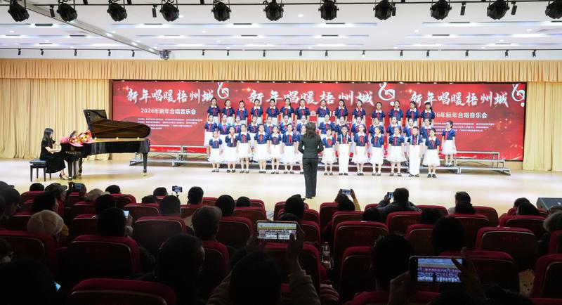 为丰富群众精神文化生活,营造新年节日氛围,1月3日下午,“新年唱暖梧州城——梧州市2026新年合唱音乐会”在广西梧州市第八中学音乐厅成功举办。本次活动由梧州市文学艺术界联合会、中共万秀区委宣传部、梧州学院教师教育学院联合主办,梧州市文艺培训中心、梧州市中小学艺术人才培训中心、梧州市合唱协会共同承办,广西艺术教育学会合唱专业委员会、广西梧州六堡堡食品有限公司协办支持。