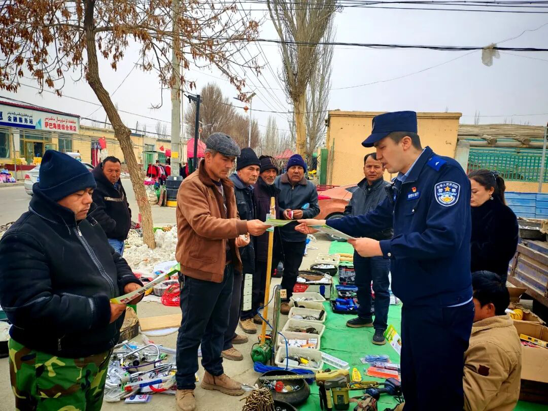 隆冬时节,寒意渐浓。2026年1月5日,新疆新和县公安局尤鲁都斯巴格镇派出所抓住辖区“巴扎天”(“巴扎”维吾尔语意为集市或农贸市场)群众纷纷前来采购年货、置办物品这一人员集中的有利时机,组织民辅警深入“巴扎”开展反诈宣传活动,将防骗知识送到群众身边。