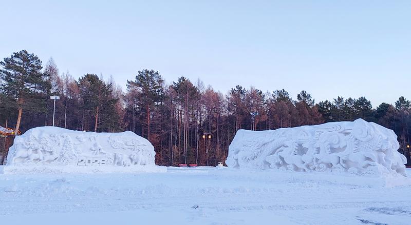 雪色中的巧思,更将“冷资源”转化为“热效应”。依托林区天然雪韵与“驿站文化”,组织专业团队在驿园公园及主要街区打造冰雪艺术景观——3座匠心独运的冰雪雕塑,150余个形态各异的雪人错落分布,憨态可掬间洋溢节日氛围。