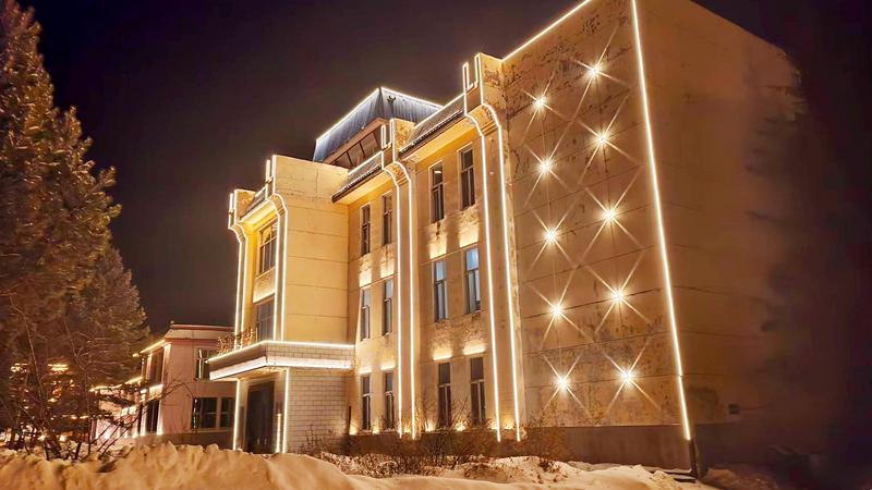 当凛冽的寒风掠过兴安岭,夜幕下的大兴安岭林业集团公司十八站林业局却暖意融融。局址沿街33栋办公楼、住宅楼及公共建筑在灯光映照下亮起。轮廓灯沿楼体外墙蜿蜒勾勒,挺拔的建筑线条在暖白光晕中清晰浮现,为沉寂的驿站小城披上了一层温柔的薄纱。部分墙体上点缀着雪人与和平鸽造型灯饰,童趣中透着温情——这一盏盏灯火,不仅是照亮归途的“引路灯”,更是嵌入寒冬深处的“暖心灯”。十八站林业局以灯为笔、以雪为纸,用一场场清雪护民的实际行动和富有创意的景观营造,将冰冷的冬季转化为有温度的民生画卷。