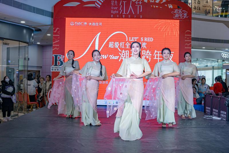 跨年夜活动同样精彩纷呈。“超级红全民联欢潮玩跨年夜”在庄河万达广场举行,活动融合文艺演出与高空无人机表演。其中“龙凤呈祥”科技大秀将传统意象与现代光影巧妙结合,吸引了大量市民游客驻足观赏,有效集聚了商圈人气,拉动了夜间消费,成为文商旅深度融合的一次生动实践。