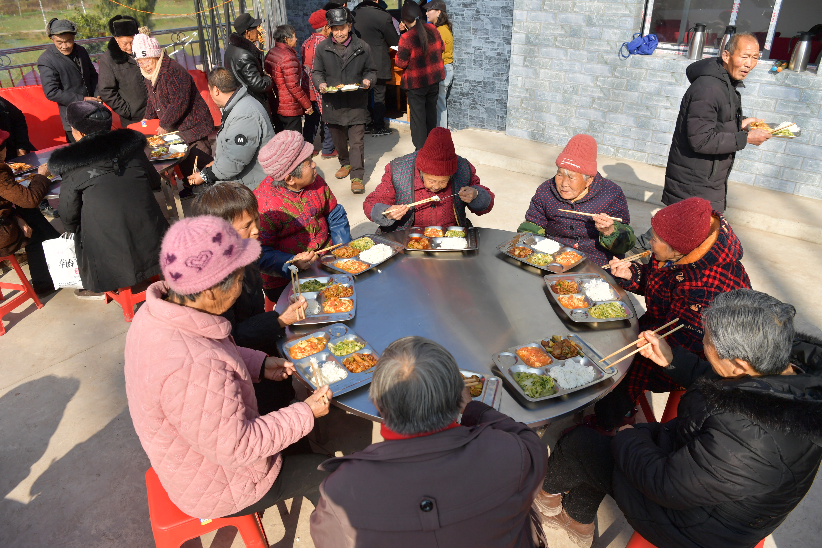 老人们在乡村大食堂吃饭 (张晓东 摄)