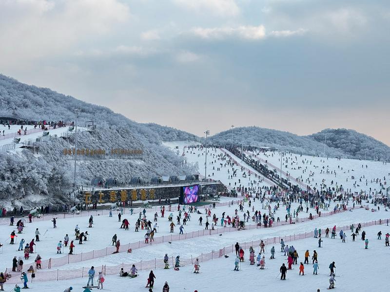 在海拔1168米的安吉云上草原滑雪场,2000余名滑雪爱好者涌入这片银装素裹的世界。作为华东地区规模领先的高山滑雪场,其近40万平方米的雪场与3.8公里雪道,正成为长三角游客体验冰雪乐趣的“家门口”选择。