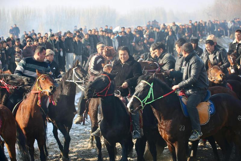 1月7日,新疆温宿县阿热勒镇皮亚其村锣鼓喧天、热闹非凡,一场融合传统体育与民俗文化的“群众村晚”暨赛马叼羊比赛在这里激情开赛。各族骑手以马为媒、以赛会友,在辽阔的田野间策马扬鞭、同场竞技,生动勾勒出一幅“石榴籽紧紧相拥”的团结画卷。