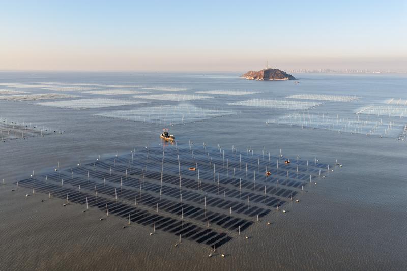 目前,江苏省连云港市海州湾海洋牧场贝类、藻类养殖正处于冬季管护期,渔民们驾驶渔船在海面上穿梭,进行添加养殖浮漂、清理海草等作业,呈现出一派“海上冬耕”生产的繁忙景象。(记者 张伟伟 通讯员 司伟)