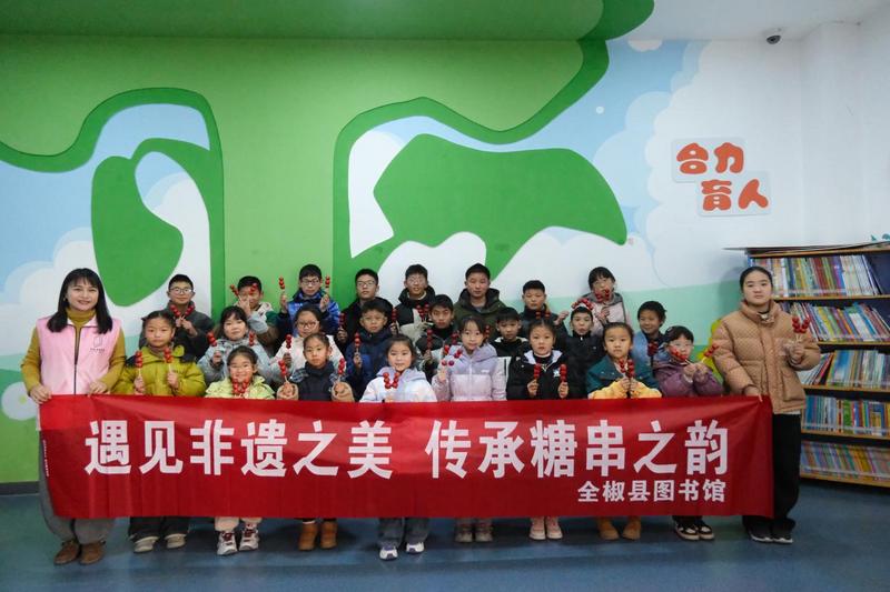 1月11日,安徽省全椒县图书馆亲子绘本室内甜香四溢,“遇见非遗之美 传承糖串之韵”少儿手作活动在这里热闹开展。二十名小读者在老师的带领下,亲手制作传统冰糖葫芦,体验非遗技艺的魅力。