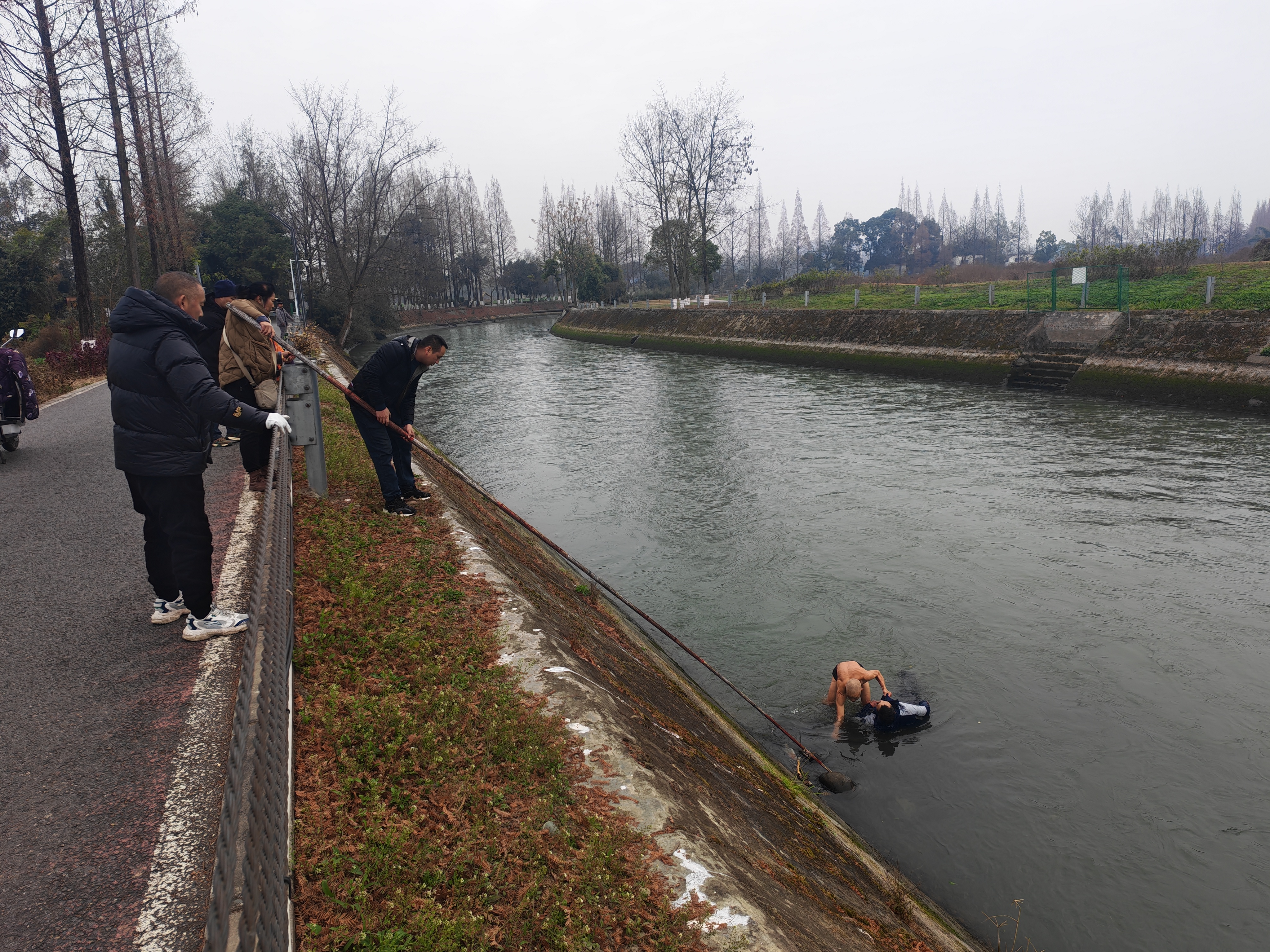 1月7日10时05分,安靖街道方桥村回水沱水域,平静的河面被一声呼喊打破:“有人落水了!救人啊!”正在河边绿道锻炼的71岁刘桂元大爷听到呼喊声后,循声望去,只见河中有一人随着激流沉浮,情况万分危急。