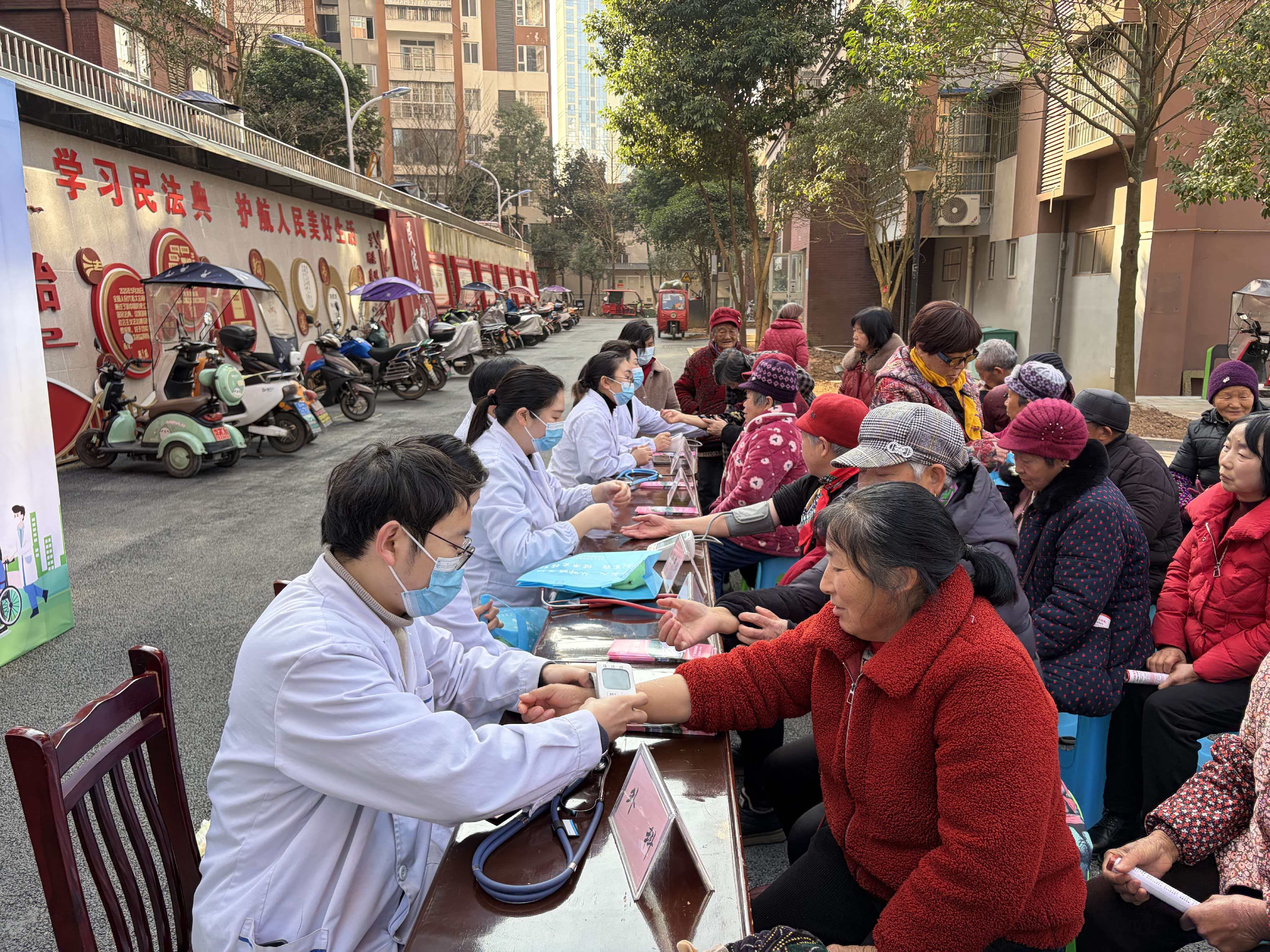 义诊活动现场,前来咨询和检查的居民络绎不绝,医护人员耐心为居民测量血压、筛查疾病,并耐心解答大家关于健康方面的疑问。