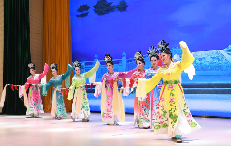 作为地方戏曲的代表,庐剧《秦雪梅》选段“观画”的登场,带来了浓郁的本土风情。演员以细腻传神的演唱,刻画了大家闺秀赏画时含蓄复杂的心绪。