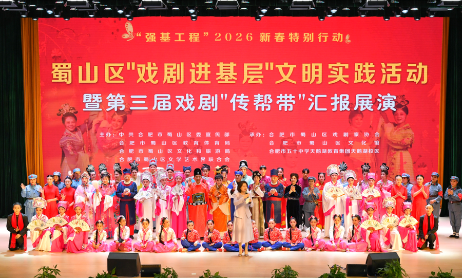 何永东表示,此次“传帮带”重点面向中小学生群体,依托传统剧目承载的历史故事与道德观念,通过戏曲生动传递,促进青少年在戏曲文化的熏陶中形成正确的历史观和价值观,增强对民族文化的认同感与自豪感。戏曲的群众基础,在蜀山这片沃土中不断扎根、延展。特别是近年来,依托“戏曲进社区、进校园”等系列常态化活动,引导戏曲艺术融入群众的日常生活;发挥艺术精品在戏曲文化普及工作中带来的流量作用,《岁岁杜鹃红》《蝶恋花——骄杨》等一批原创戏曲作品深受群众喜爱。同时,坚持把人才作为戏曲普及的活态载体,通过举办戏曲演唱大赛、公益培训等形式,让越来越多的“门外客”转变为“戏中人”。(记者 吴昊 通讯员 朱欢喜 孙雨静)