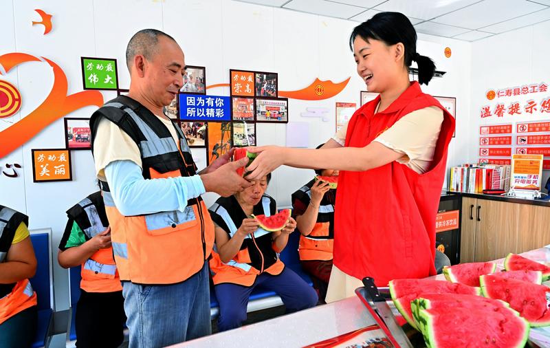 不止栖西里工会驿站,为更好关爱环卫工人、交警、快递员、外卖员、城管等广大户外劳动者,仁寿县在全县范围内统筹布局,累计建成投用79个工会驿站,实现了重点商圈、交通枢纽、产业园区等新就业群体集中区域全覆盖,让奔波在路上的户外劳动者,随时随地都能找到歇脚的“暖心港湾”。
