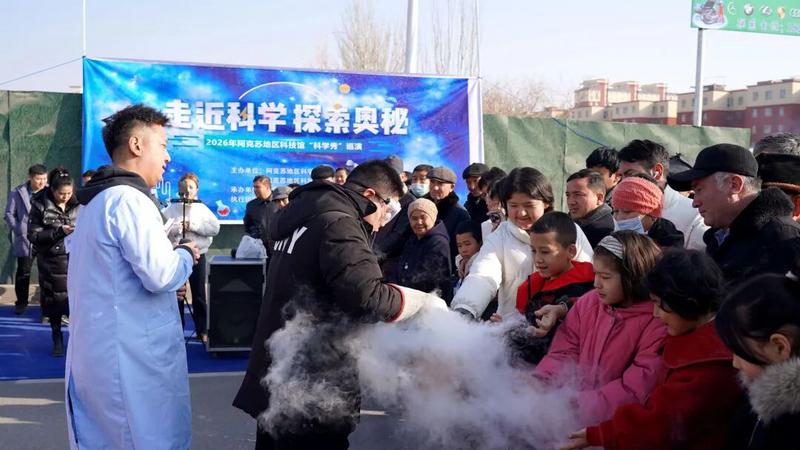 为持续推动科普惠民走深走实,让科学知识融入百姓日常、服务群众生活,切实增强广大群众的科学素养,1月10日,“‘空气’科学秀?解锁看不见的力量”主题科普活动在新疆温宿大巴扎精彩举办,温宿县科学技术协会工作人员、基层群众及青少年代表齐聚现场,共赴这场兼具文化底蕴与科普温度的科学盛宴。