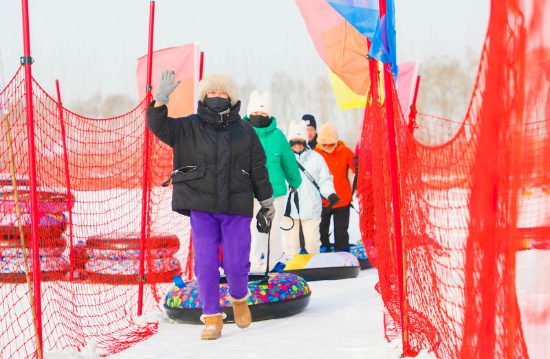 乐园位于村里的稻田画景区,占地2万平方米,以“奇遇冰雪,乐在邵家”为主题,精心打造冰雪特色体验项目20余个。200米长的彩虹雪圈道能让游客体验到飞驰而下的欢乐,既有过山车的颠簸,也有碰撞带来的欢乐。骑上雪地越野摩托车,在雪地自由驰骋,感受引擎轰鸣与冰雪征服感。雪地坦克、香蕉船等亲子项目同样人头攒动。“真没想到咱村里能有这么专业的冰雪乐园!我和家人体验了雪地越野车,又刺激又安全,这趟来得太值了!”沈阳游客武曼丽笑着说。