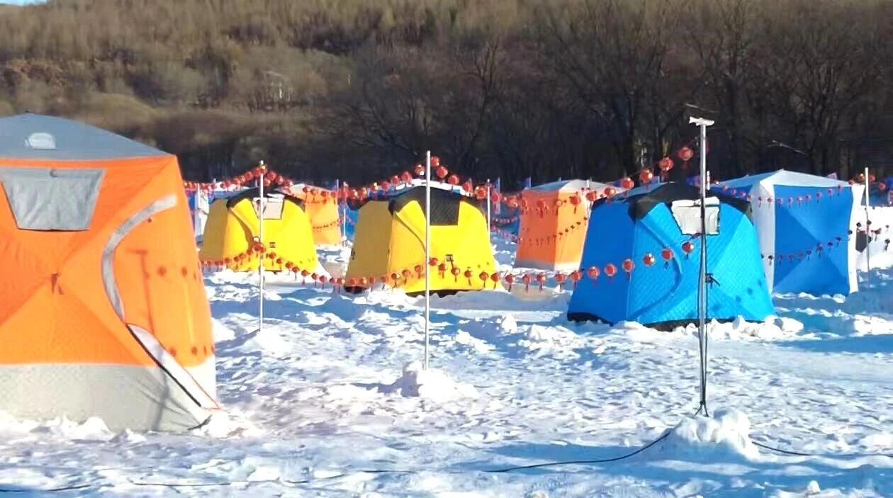 比赛正式开始后,冰封的湖面上整齐排列起数十顶垂钓帐篷,五颜六色的帐篷在白雪皑皑的冰原上格外醒目,构成了一道独特的冬日景观。选手们迅速进入状态,熟练地布设鱼线、调试鱼漂,而后静坐冰洞旁,专注地等待着鱼儿上钩,每一个动作都尽显专业与从容。