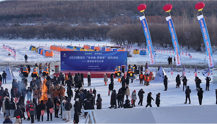 1月16日,逊克县冷水鱼冬捕季冬钓比赛在乌娜吉白桦小镇冰雪乐园盛大开幕,众多垂钓爱好者齐聚冰封湖面,在凛冽寒风中角逐渔趣;各地游客纷至沓来,共赴这场融合生态之美、渔猎文化与冰雪激情的北国冬日盛宴。