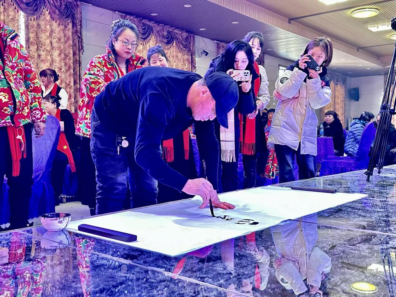 特色节目独具匠心,尽显乡土文化魅力。张喜一人独挑模仿秀与书法表演,惟妙惟肖的模仿逗得全场欢笑不断,书法等作品一气呵成,刚劲有力的字体引得阵阵喝彩;诗朗诵《老家下雪了》,声情并茂描绘北方乡村冬日雪景与乡愁温情,细腻情感让不少观众眼眶泛红;二人转《小妹妹送情郎》,韵味地道、唱腔悠扬,原汁原味的民俗演绎让观众大饱眼福,老年观众纷纷跟着节奏轻轻哼唱。晚会尾声,全体演员共同唱响《难忘今宵》,悠扬歌声里满是不舍与期盼,晚会在温馨和谐的氛围中圆满落幕。