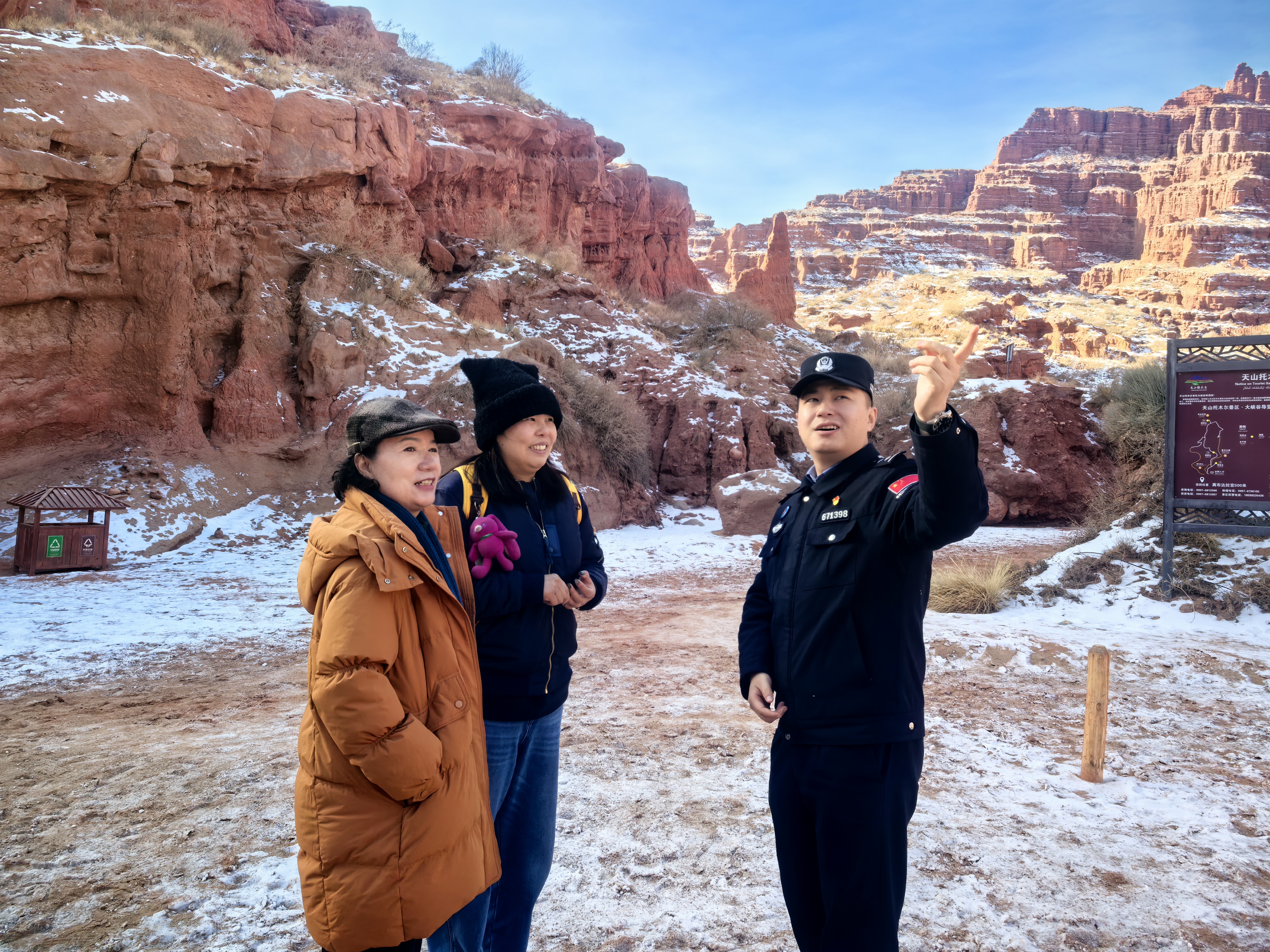 “景区升级到哪里,警务服务就跟进到哪里。”这是博孜墩边境派出所传承半个多世纪的坚守。始建于1964年的派出所,2019年完成转隶改革后,恰逢阿克苏地区文旅产业蓬勃兴起,托木尔大峡谷5A景区创建工作全面推进。面对逐年攀升的游客量——从2023年43万人次到2025年稳定在59万人次,派出所于2023年在景区核心区设立警务室,2025年升级打造大峡谷边境旅游警务驿站,将警务工作深度嵌入景区发展脉络。
