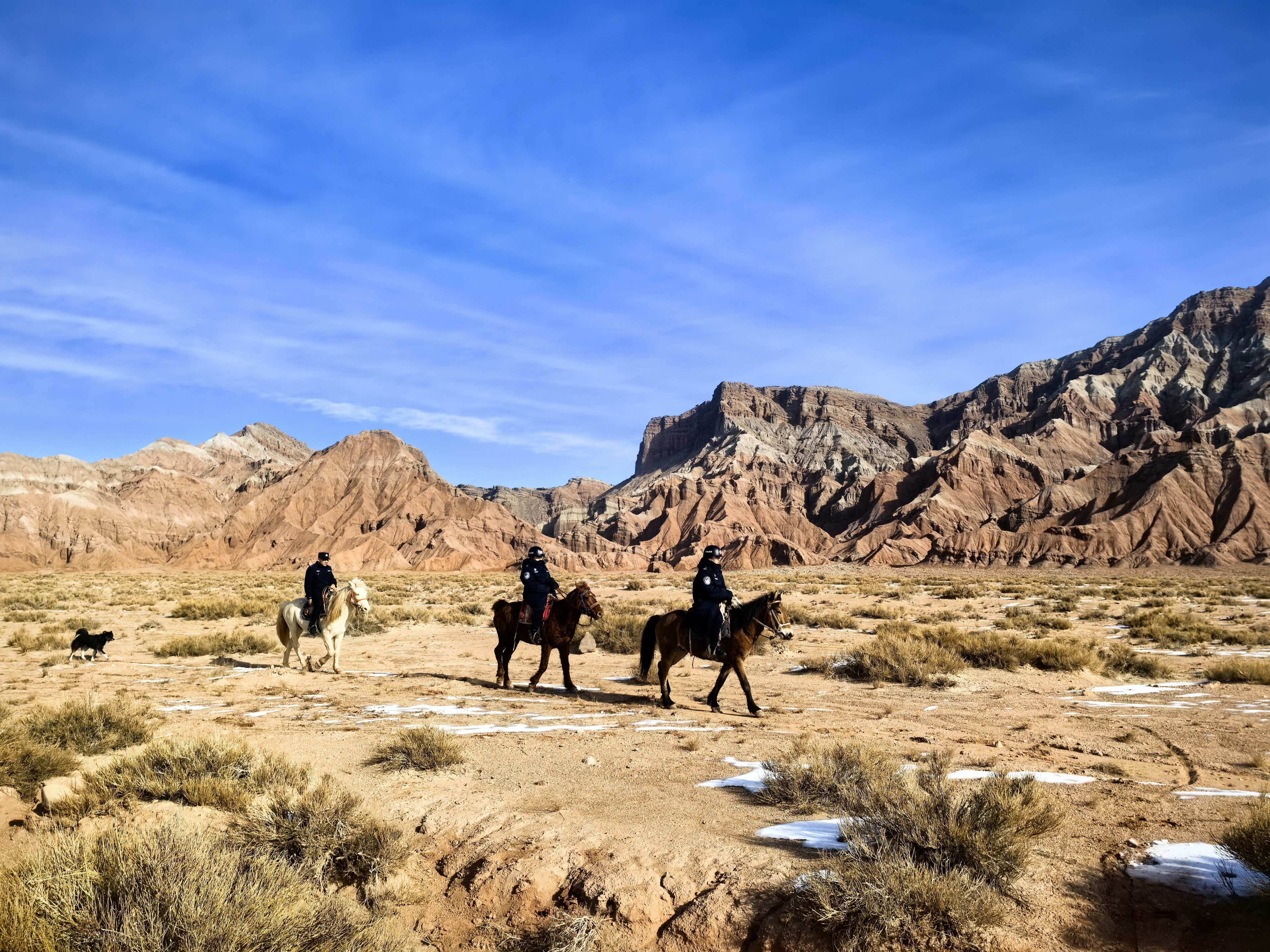 图为骑警在温宿大峡谷景区巡逻(查燕荣 摄)