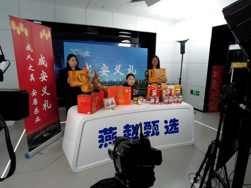 主播在“邯宝坊特产˙乐惠京畿”成安县专场活动现场进行直播销售。(武成军 摄)