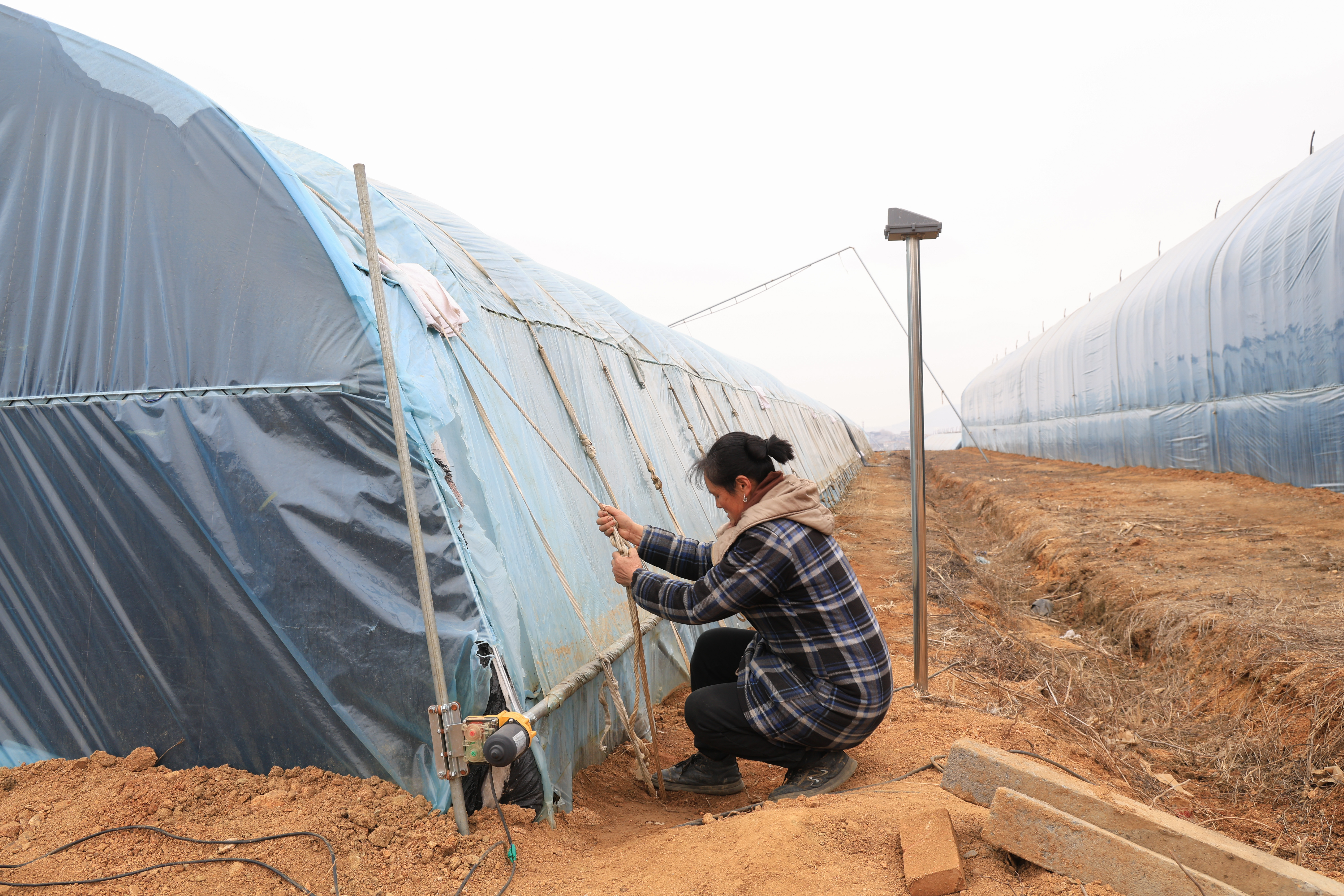 走进大棚,一股温热的气流扑面而来,与棚外零下2摄氏度的严寒形成鲜明反差。几名农户正手持压膜绳,沿着棚体两侧稳步前行,将被寒风掀起的棚膜重新压紧固定,金属卡扣与钢管碰撞发出清脆的声响。“为应对低温高湿可能引发的病害,棚内顶端还悬挂着多层保温幕帘,地面覆盖着黑色地膜,多层覆盖能减少热量流失,膜下滴灌既能补水又能降湿,双管齐下防范灰霉病。”姚明波说。