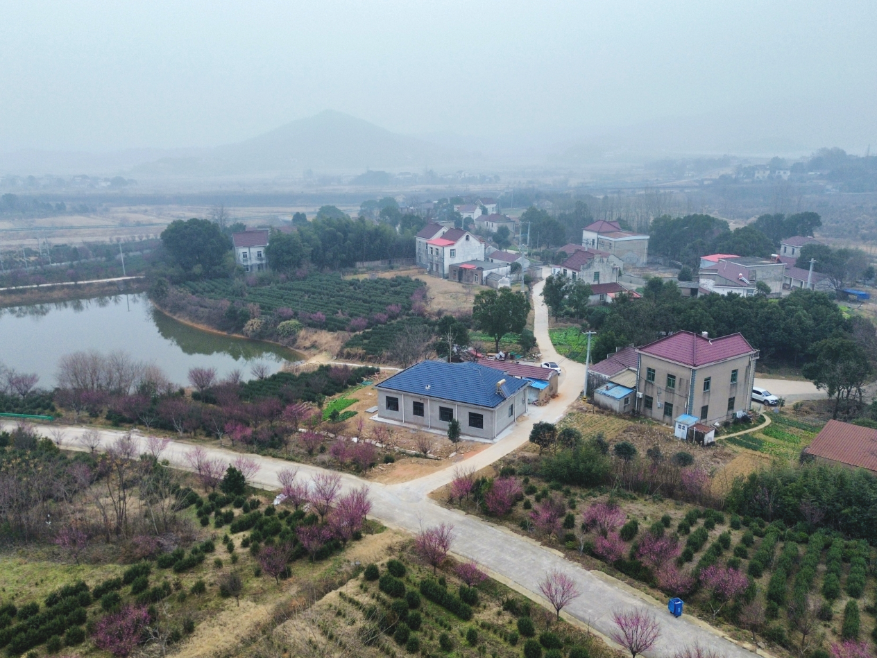 1月17日,安徽庐江县万山镇廿埠村大枫叶树村民组的绕村路沿线,百余株梅花迎来盛花期。红如烈焰的花瓣随微风轻颤,淡雅的梅香漫过灰墙红瓦的农房、平整干净的柏油路,与远处的群山、近处的茶园相映成趣,勾勒出“梅香满村路,人在画中游”的冬日乡村画卷。
