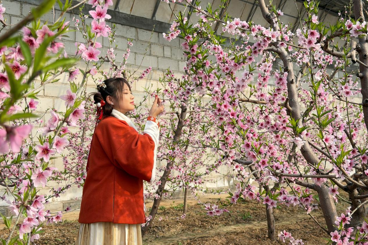 “真没想到,寒冬腊月里还能看到桃花开得这么盛!”来自市区的邱女士身着汉服置身花海,频频举起手机记录这冬日难得一见的景致。随着冬季赏花季的到来,这座智能大棚基地化身为冬日里的“网红”打卡地。