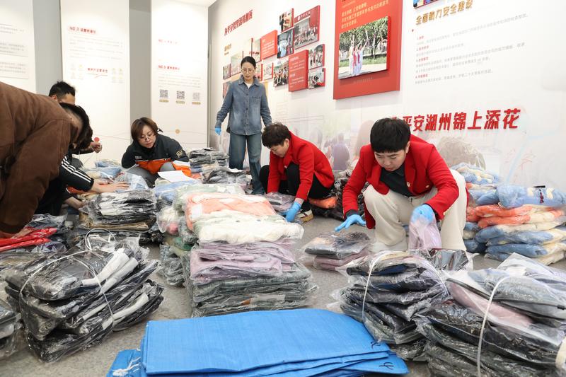 1月16日下午两点,一场充满温情的打包行动如期展开:湖州市吴兴区织里镇的平安大姐志愿服务队、新织里人妇女联合会的志愿者们,与湖州市织里镇平安大姐社会工作室的公益合伙人齐聚一堂,亲手将一件件冬衣整理打包,把满满的关爱缝进每一个包裹,让2026年的第一份爱心,带着温度与期盼,奔赴远方的童心。其中1302件是送往赣州的9个困难地区,302件送往哈尔滨树人学校。一件冬衣,承载的是一份牵挂;一次行动,传递的是一份希望。