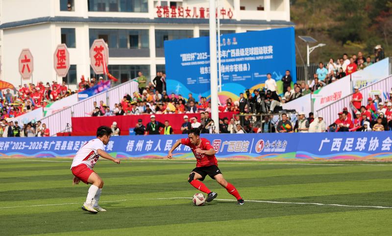 当足球的激情与六堡茶的醇香交织,2025—2026年广西县级足球超级联赛桂东赛区苍梧主场于1月17日准时打响,梧州市苍梧县六堡茶队坐镇主场迎战玉林市北流市队,在冬日茶乡掀起足球热潮。这场集竞技激情、全民狂欢与文旅融合于一体的足球盛宴,不仅呈现了一场高水平的绿茵对决,更以赛事为纽带,彰显了苍梧这座“中国名茶之乡”的独特魅力与蓬勃活力。