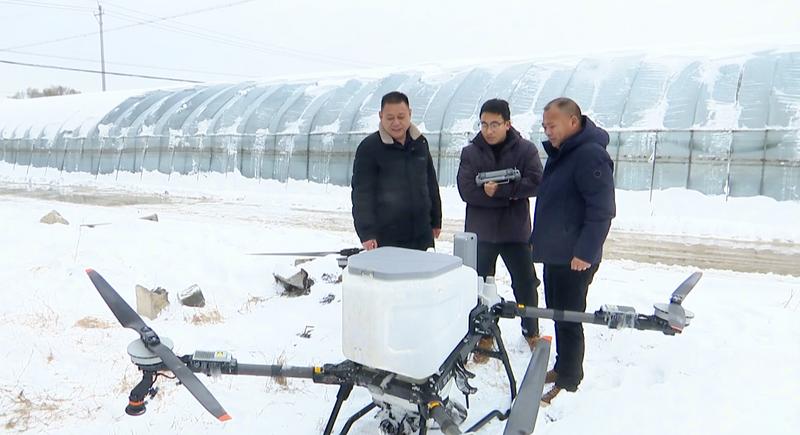 受寒潮影响,安徽省萧县全境普降大雪,累计降雪量12.9mm,降雪最大积雪深度11cm。为保障农业生产安全,萧县运用无人机等科技手段,对设施农业大棚进行融雪除冰。