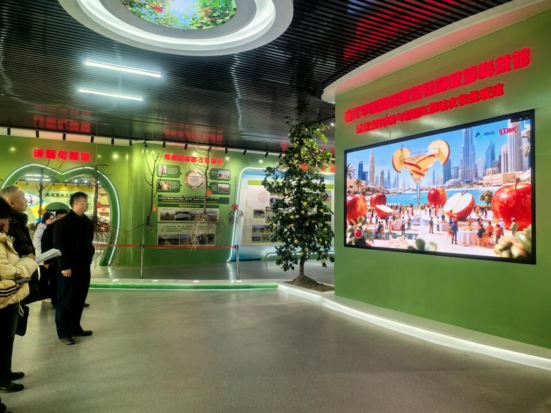 刚对外开放的阿克苏苹果科技馆内,果香与科技感交织。果农围着“青砧”砧木模型咨询技术细节,展示区里冰糖心苹果脆甜多汁,苹果脆片等深加工产品陈列整齐。这座场馆用实打实的成果,呈现着新疆阿克苏苹果产业从依赖经验种植到科技支撑发展的转变。