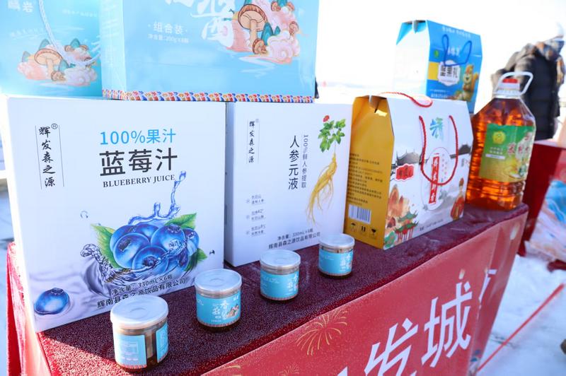 冬捕活动现场辉南各乡镇的特色农产品让人目不暇接(姜博 摄)