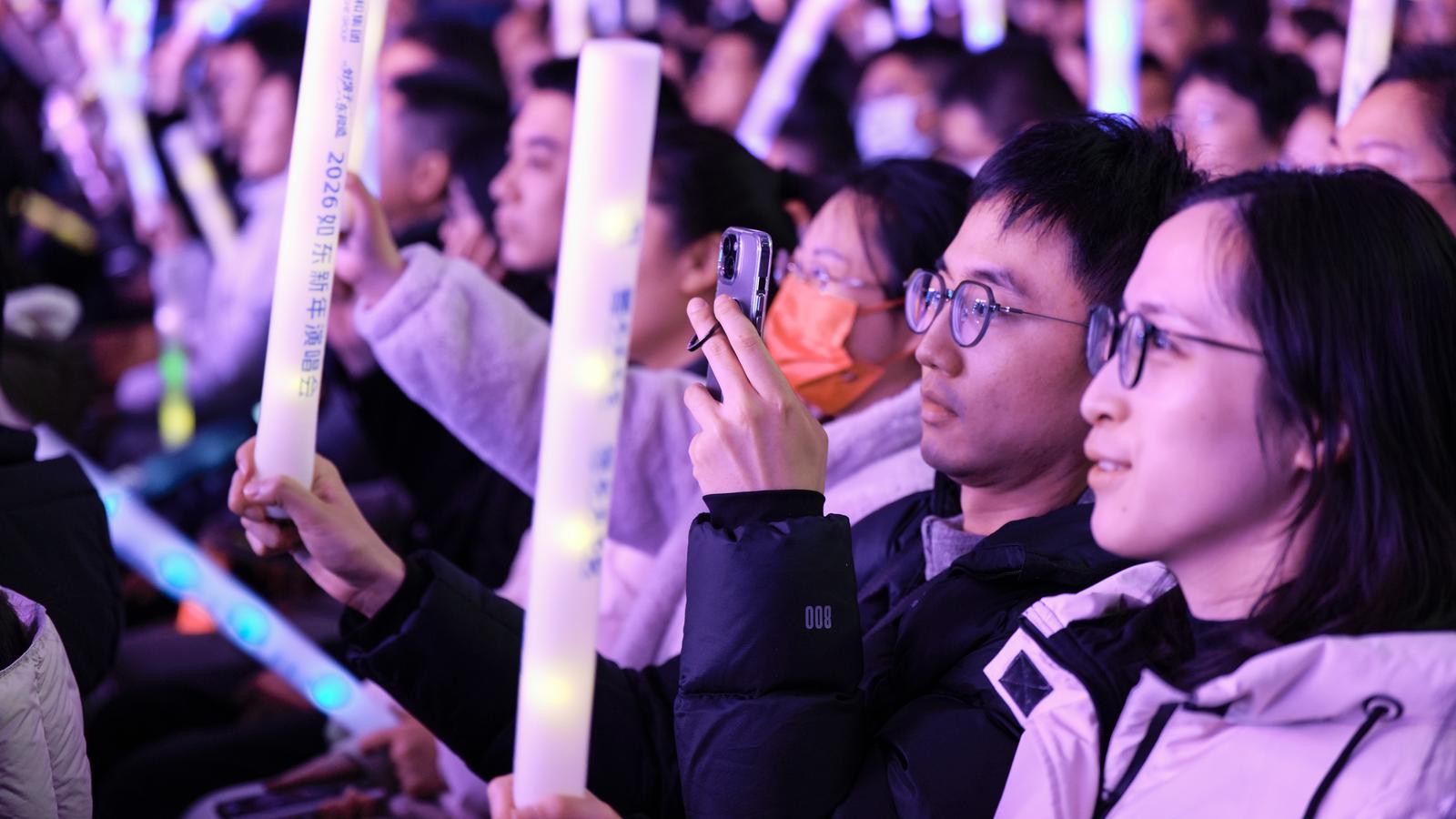 演出间隙,歌手们还不时与台下观众互动,用亲切的话语表达对如东的喜爱和对观众的感谢。从“第一次来到如东,这里的观众太热情了,让我感受到了冬日里的温暖”的暖心表白,到“如东文蛤好吃”的美食赞叹,再到“喜欢如东非遗产品”的文化点赞,每一句真诚的分享都引发台下阵阵欢呼。“氛围真的很好,特别是金海心的《那么骄傲》旋律一响起,让我感觉仿佛拥抱了童年的自己!”离场时,不少观众仍意犹未尽,边走边与同伴讨论着演唱会的精彩瞬间。
