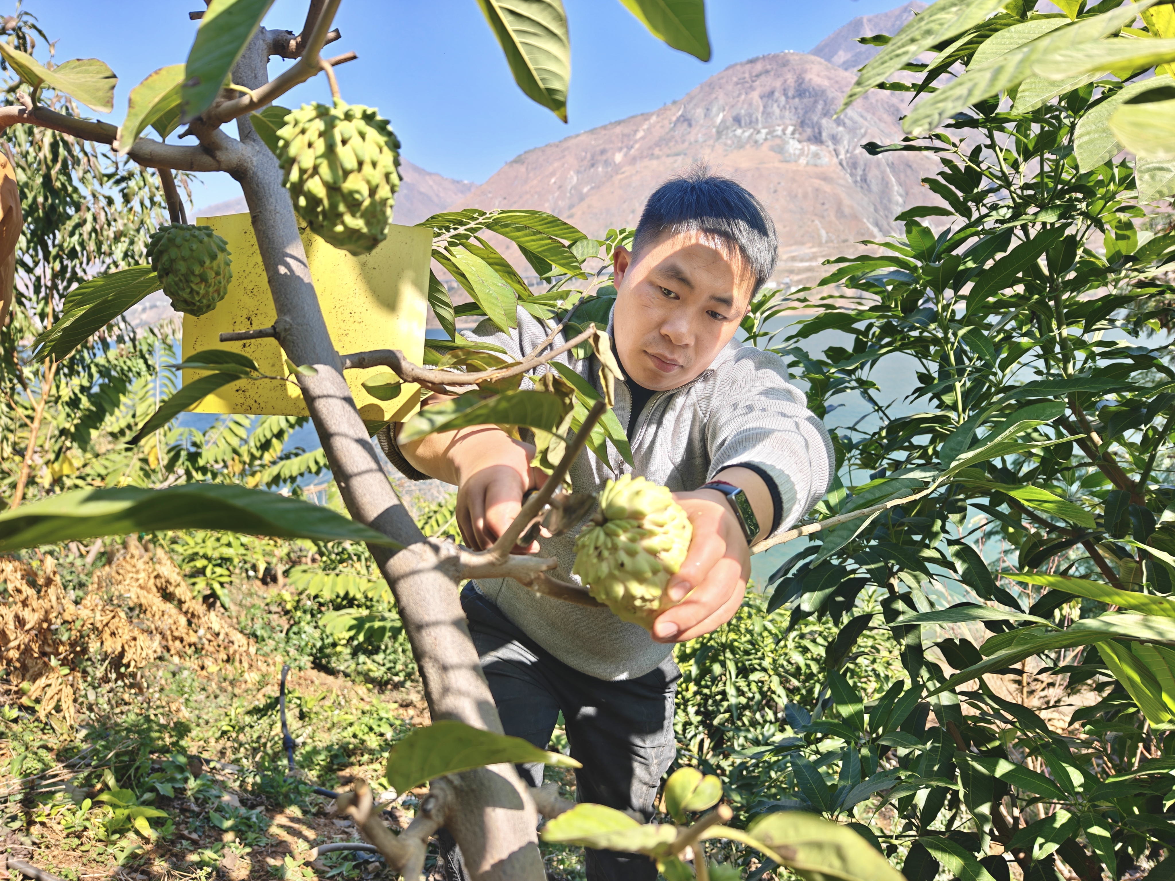 果香引得游人来,释迦果的成功上市,也让鲁吉镇多了一张吸引游客的“甜蜜名片”。“没想到会东也有释迦果,当我听说这个消息的时候,我就亲自开车从县城来到了这个基地。金沙江边秀丽的风景、清甜的果实,再加上舒适的体感温度和垂钓乐趣,让这里成了冬日打卡的好去处。”游客晏和发捧着刚采摘的释迦果赞不绝口。