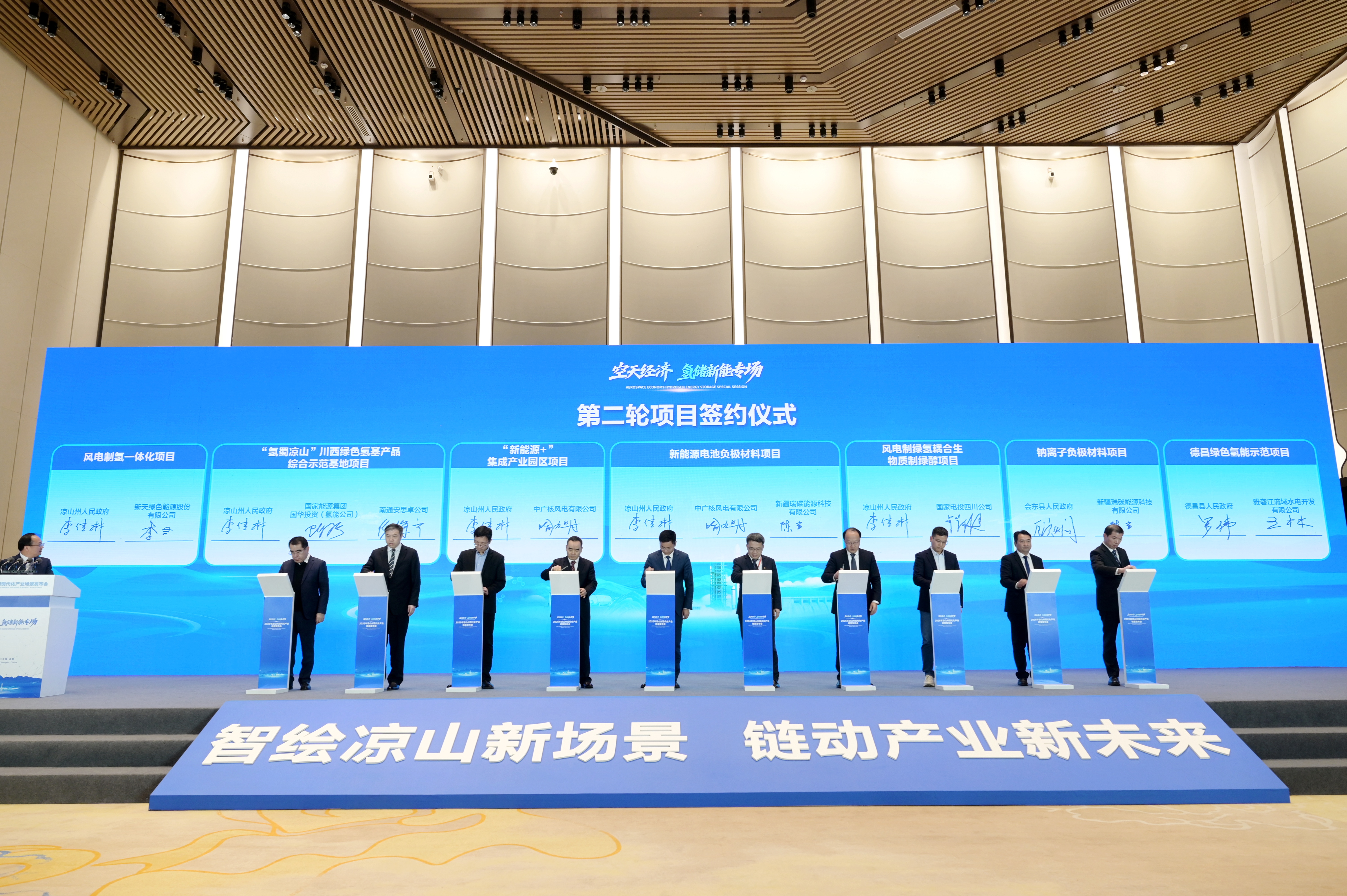 围绕“空天经济与氢储新能”场景,本次集中签约共11个项目,涵盖空天经济类4个、氢储新能类7个,标志着凉山州在商业航天、低空经济、氢能储能等战略性新兴产业布局上迈出了关键步伐。此次签约不仅实现了资金与项目的有效对接,也展示出凉山立足产业基础、把握能源革命与空天科技机遇的重要布局。东方空间(山东)科技有限公司、成都纵横自动化技术股份有限公司、国家能源集团氢能科技有限责任公司等企业将作为场景合伙人与凉山共建新的产业场景,推动凉山州现代化产业体系建设,实现新跨越。同时,通过专项政策引导与产业基金支持,凉山将持续优化营商环境,吸引更多优质企业参与西部商业航天港、氢能综合应用示范区等重大载体建设,助力全省乃至全国绿色低碳与空天技术创新发展。