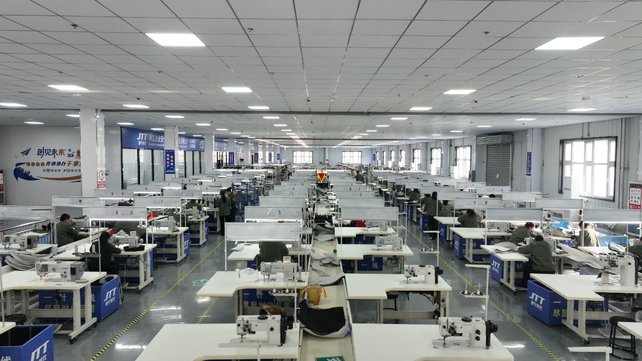 静宁时代车间里的智能缝纫机生产线 现场(胡文龙 摄)