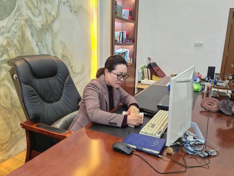 权宁子正在办公室对2025年工作进行盘点(非朗 摄)