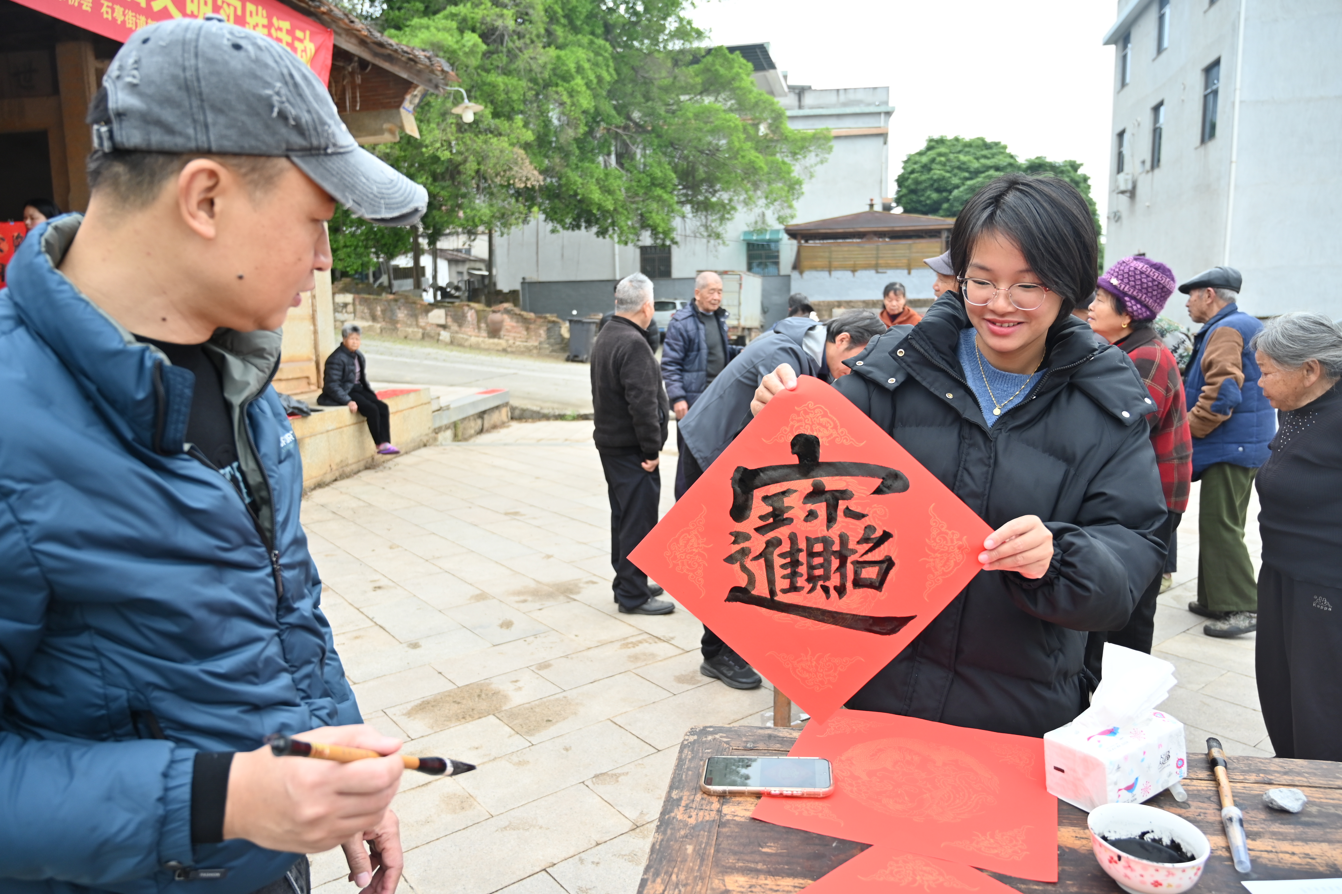 书法家老师写下居民对新年的美好期许(陈佳琦 摄)