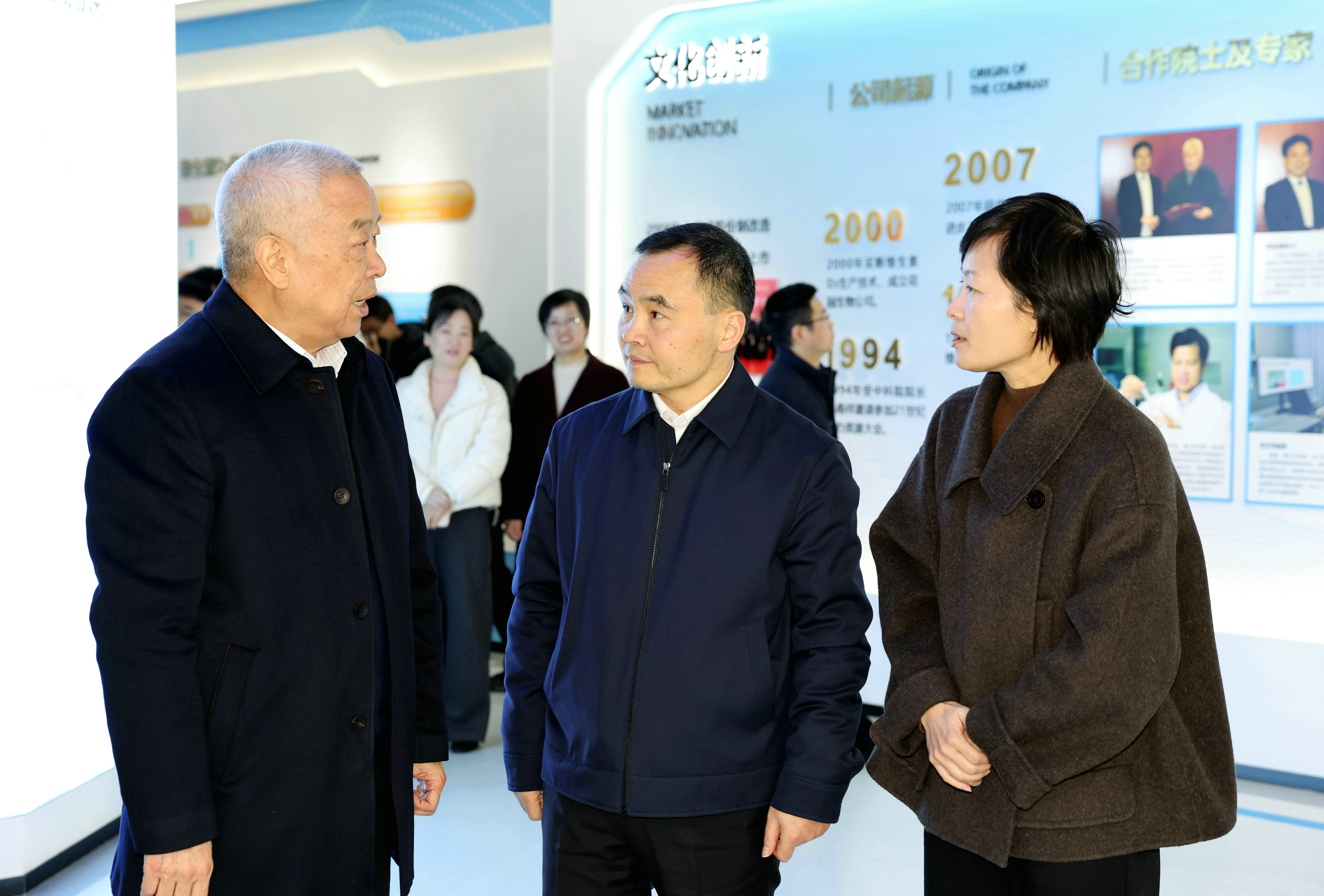 黄胜可(中)在浙江花园生物医药股份有限公司调研 (王江红 摄)