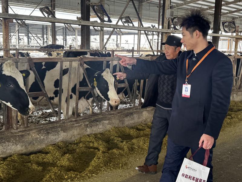 客户经理吕林走访奶牛养殖户 (陈楠 摄)