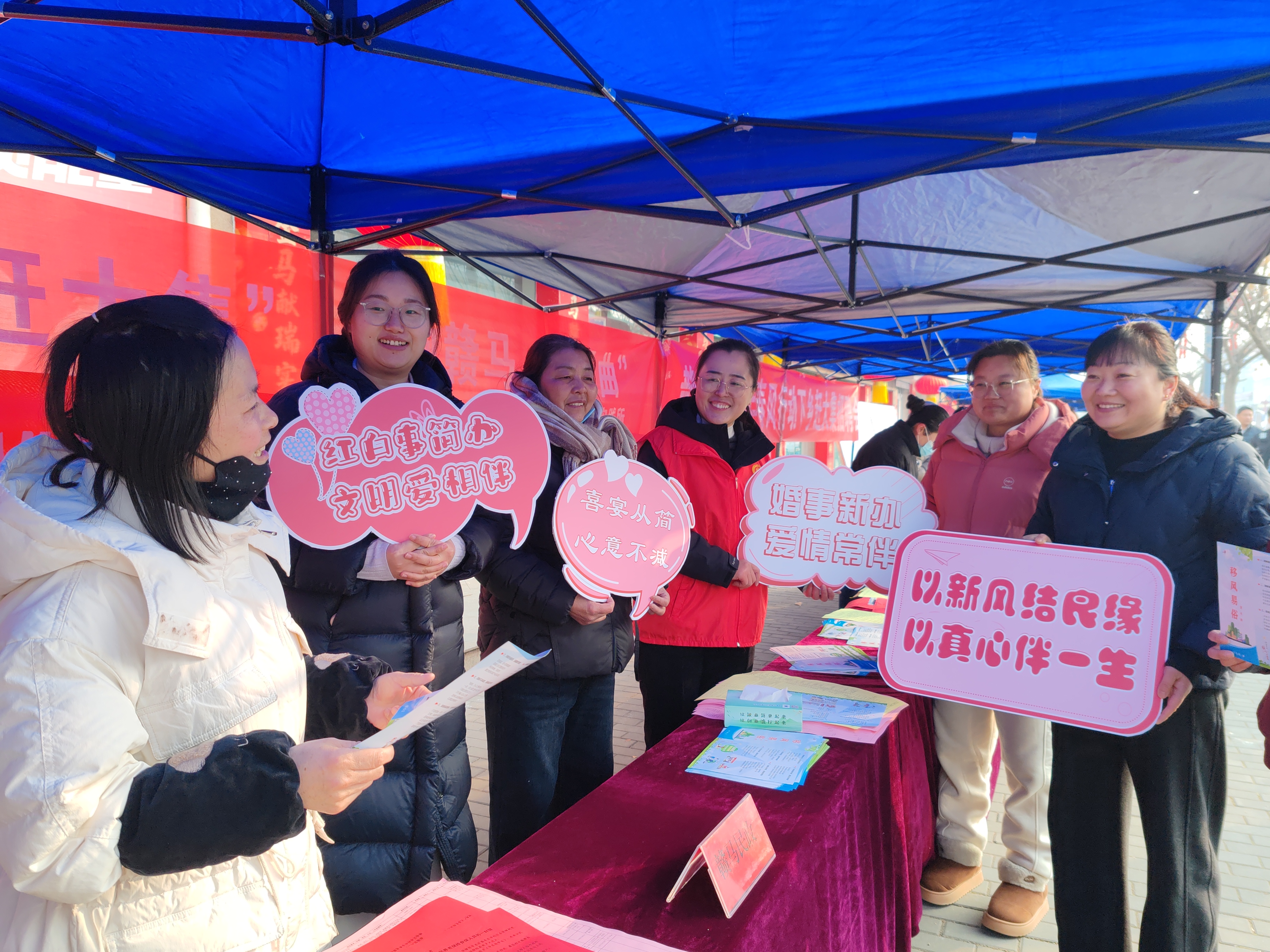 近日,江苏省连云港市赣榆区的赣马大集热闹非凡,香甜的糖葫芦、琳琅满目的年货洋溢着浓浓的年味。在集市核心区域,摆放着“婚事新办 爱情常伴”“喜宴从简 心意不减”等主题手牌的宣传服务台吸引了赶集群众驻足参与。由赣马镇人民政府组织的“移风易俗赶大集,奏响赣马文明曲”主题宣传活动正式拉开序幕。