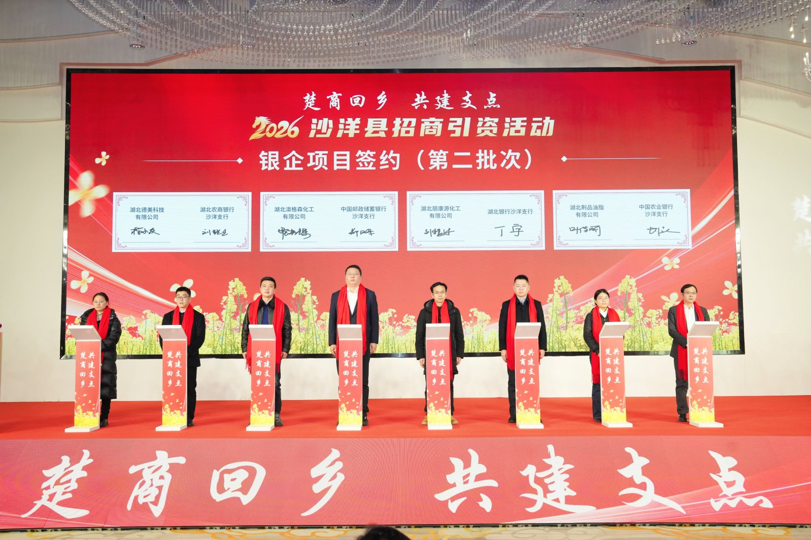 2月4日,“楚商回乡 共建支点”2026年沙洋县招商引资活动举行,130余名沙洋籍在外商会负责人、企业家、校友代表等齐聚沙洋县,共叙故土情谊、共商合作事宜、共谋发展新篇。