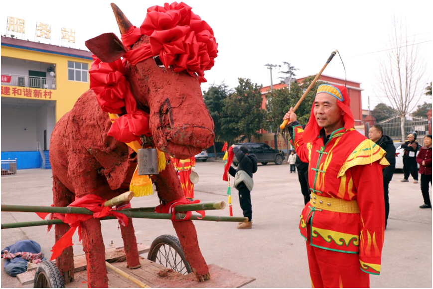 2月4日上午,河南省平顶山市宝丰县商酒务镇赵官营村洋溢着热闹非凡的气氛。在通天的锣鼓声中,赵官营村传统民俗“打春牛”拉开了帷幕。
