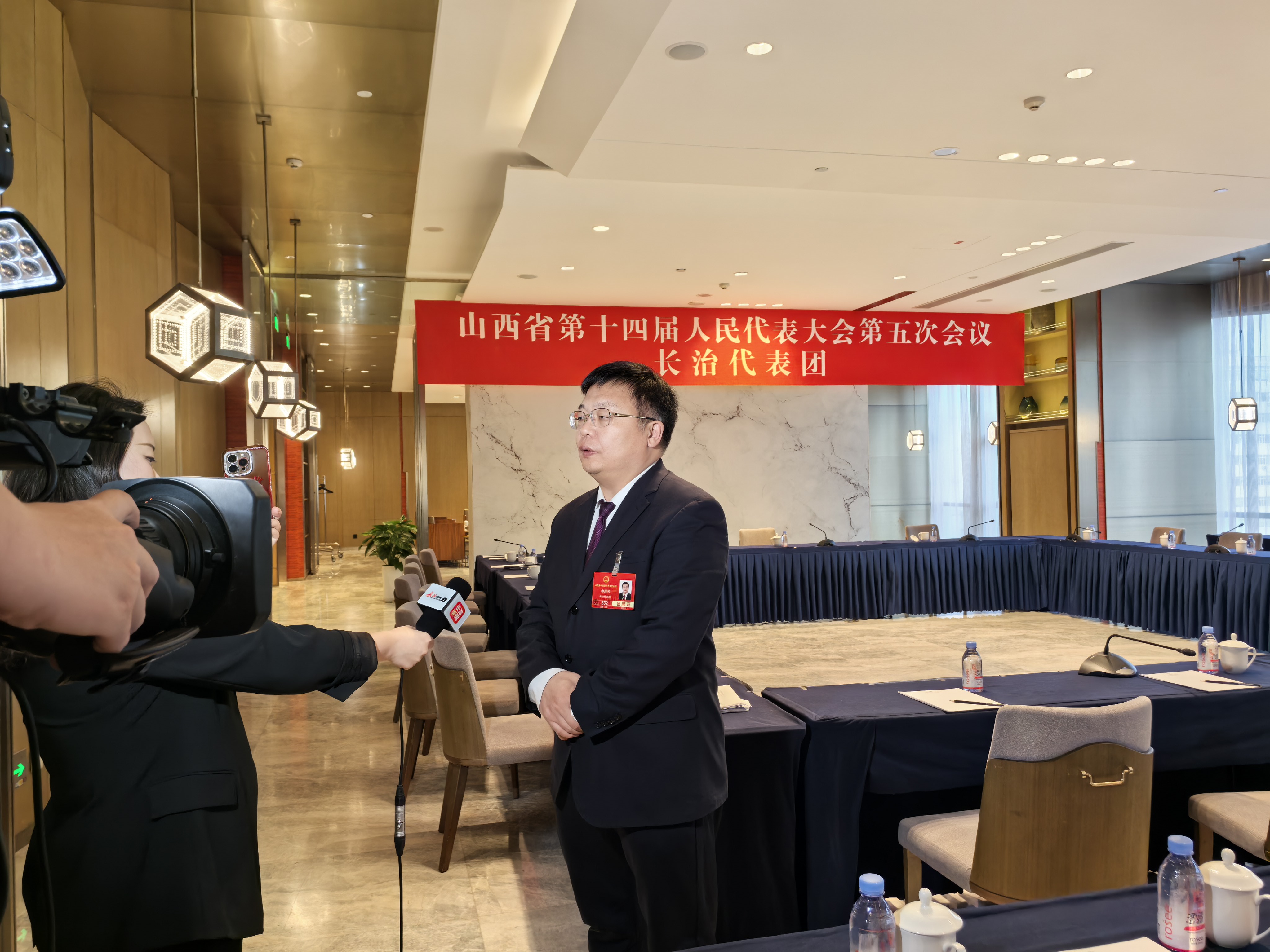 申晨芳代表现场接受采访(席兆平 摄)