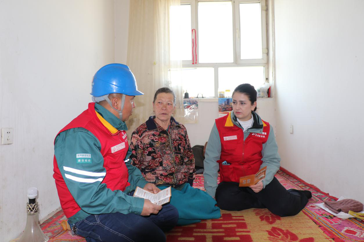 2月5日,国网阿克苏市供电公司工作人员走访慰问社区困难家庭,宣传党的政策,开展电力义诊。(邸敏 摄)